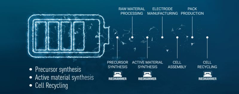 Riedhammer is the world’s leading kiln plant manufacturer. With nearly 100 years of know-how, innovative heat treatment technology and expertise in the fields of advanced battery materials, battery recycling, carbon and technical ceramics we are the perfect partner for customers seeking well thought-out and reliable technological solutions for all firing processes. We provide and install complete plant solutions – worldwide and are constantly extending our expertise upstream and downstream of the kiln. With our advanced know-how in Lithium battery powder manufacturing, we provide solutions for the following process steps: